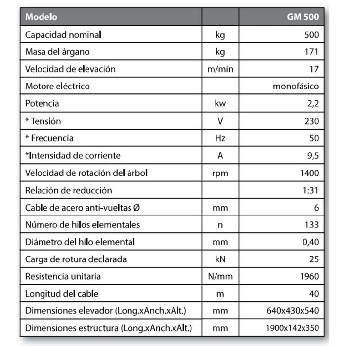 Grúa Iori GM 500 Monofásico